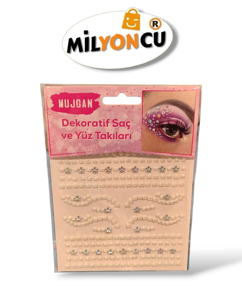 Mujgan Dekoratif Saç ve Yüz Takıları, yapışkanlı inci ve taş detaylarıyla saç ve yüz bölgesine ışıltılı bir görünüm kazandıran pratik bir aksesuardır. Kolay uygulanabilir yapısı sayesinde özel günlerde, sahne makyajlarında ve günlük stilinizi renklendirmek istediğiniz anlarda ideal bir kullanım sunar.