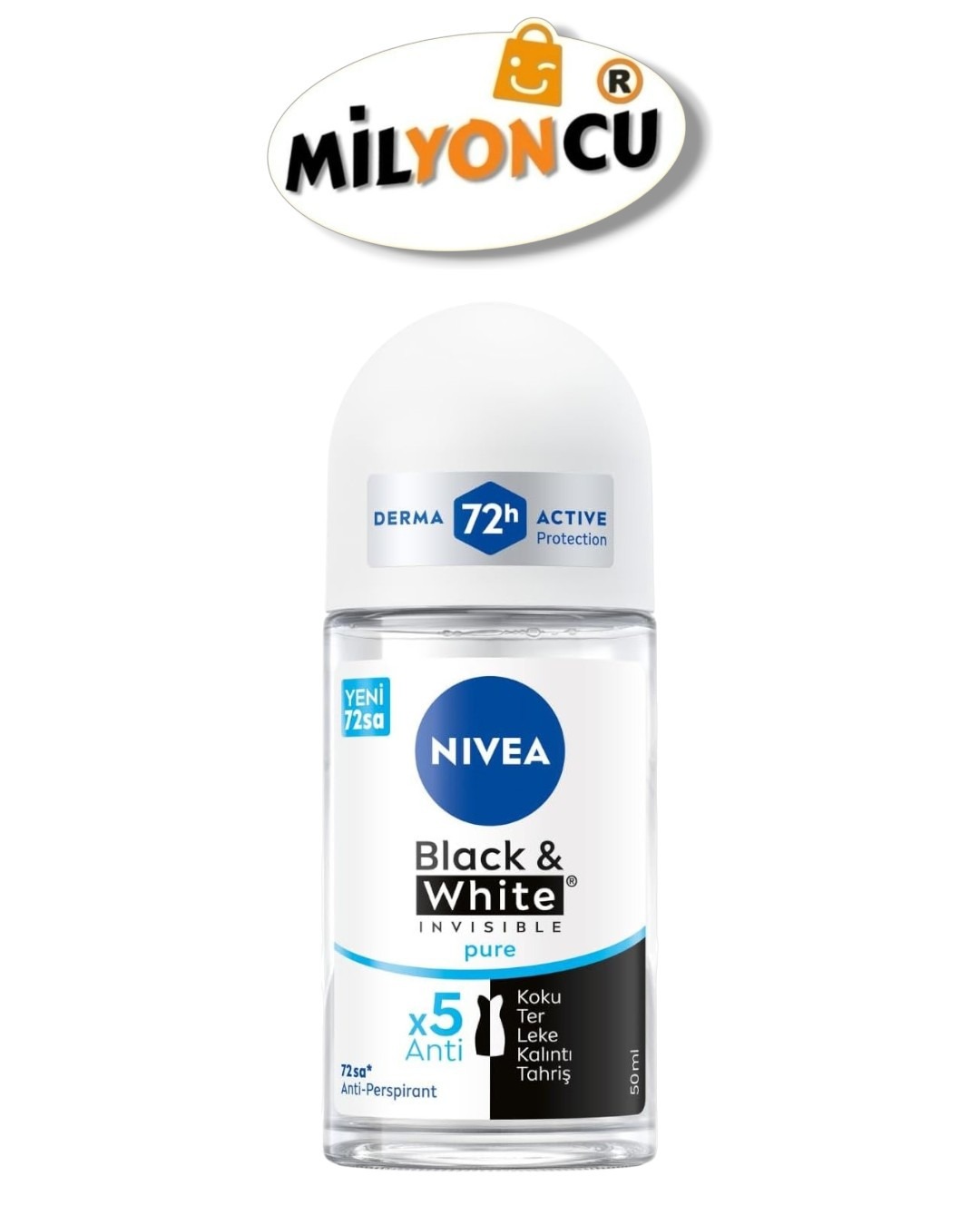 Nivea Black & White Invisible Pure Roll-On, terleme ve kötü kokuya karşı güçlü koruma sağlarken kıyafetlerde beyaz iz ve sarı leke oluşumunu önlemeye yardımcı olacak şekilde geliştirilmiştir. Hafif ve ferah kokusu gün boyu temiz bir his sunar. Ciltle uyumlu formülü sayesinde hassas ciltler için de uygundur. Düzenli kullanımda konforlu, temiz ve güven veren bir bakım rutini oluşturur.