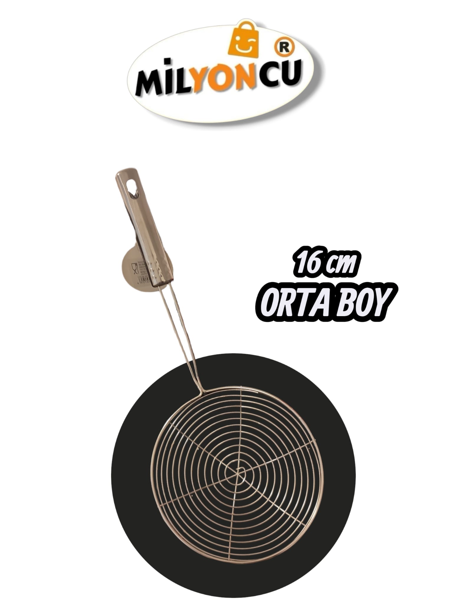 PASLANMAZ ÇELİK KIZARTMA KEVGİRİ 16 CM ORTA BOY