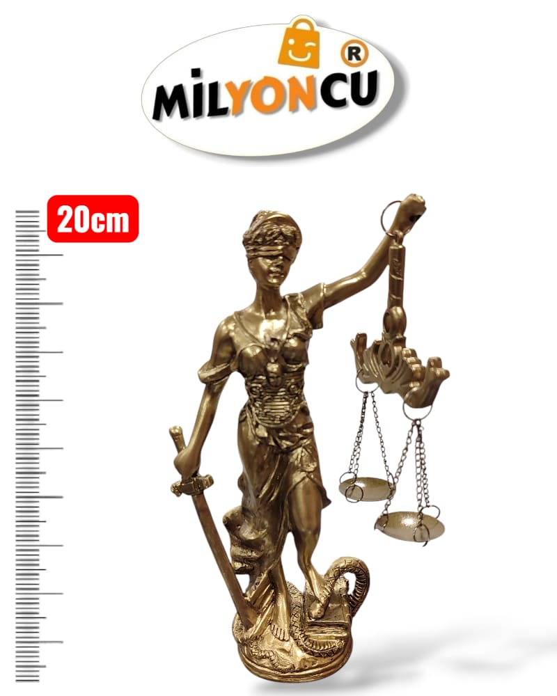 20 cm Adalet Heykeli, Adalet Tanrıçası Themis’i temsil eden zarif tasarımıyla çalışma masası, ofis ve yaşam alanlarına anlamlı bir dekoratif dokunuş sağlar. Gözü bağlı figürü, kılıcı ve terazisiyle adalet, objektiflik ve doğruluk sembolünü yansıtan bu detaylı heykel; hukuk büroları, avukat ofisleri ve kitaplıklar için ideal bir dekor parçasıdır.